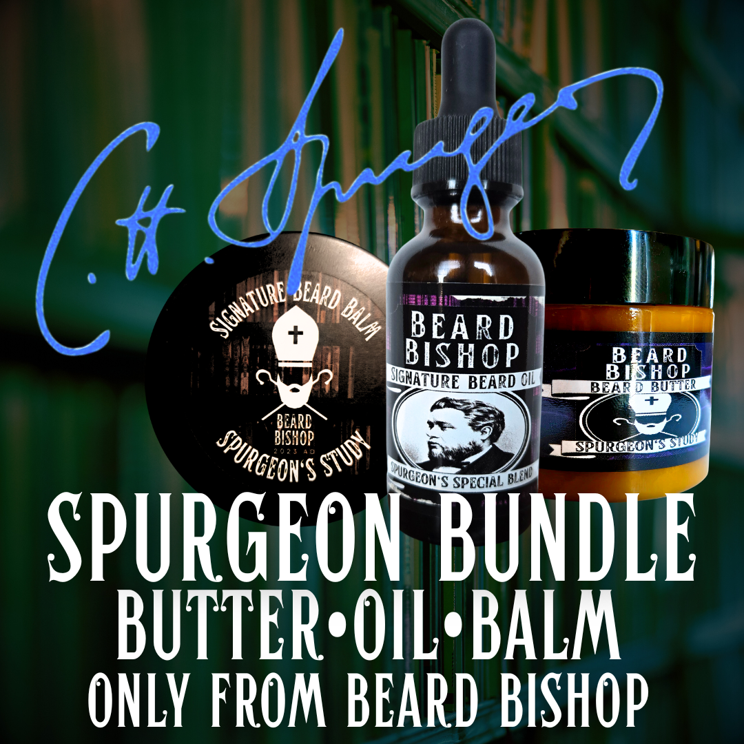 Our Spurgeon inspired products all included in one bundle only from Beard Bishop. It includes Spurgeon’s Special Blend Beard Oil and butter, and the Spurgeon’s Study Beard Balm. All three combined will leave your beard feeling and smelling great and rival the beard of the "Prince of Preachers".
